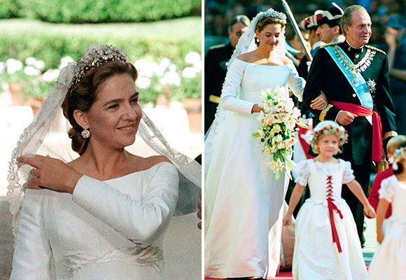 La infanta Cristina utilizó un velo de incalculable valor, una reconstrucción de una mantilla de tul y encaje de Bruselas, que había pertenecido a su antecesora la reina María Cristina de Austria.