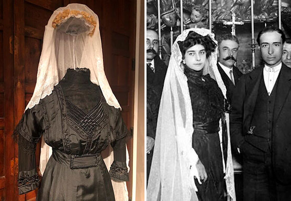 Las novias de la época vestían de negro, hasta que se designó este color como luto universal. Aunque, la novedad de esta época en España la marcó Pastora Imperio con El Gallo. Este evento sería la primera boda entre una folclórica y un torero. Para esta ocasión la novia decidió mezclar el blanco y negro en su look de novia, compuesto por una mantilla blanca y vestido negro.