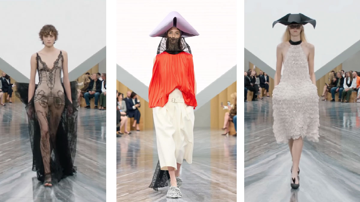 El desfile ha comenzado con una proyección audiovisual sobre una pirámide invertida que hablaba de innovación, avance y modernidad. Items que están ligados a su trabajo como diseñador y que marcaron, por ejemplo, su paso por Loewe.