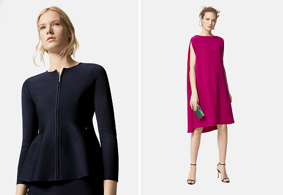 Chaqueta de Carolina Herrera en punto azul marino / Vestido caftán de Carolina Herrera