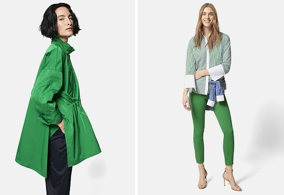 Cazadora técnica verde de Carolina Herrera / Propuesta de Carolina Herrera con camisa rayas en verde y pantalón touky verde.