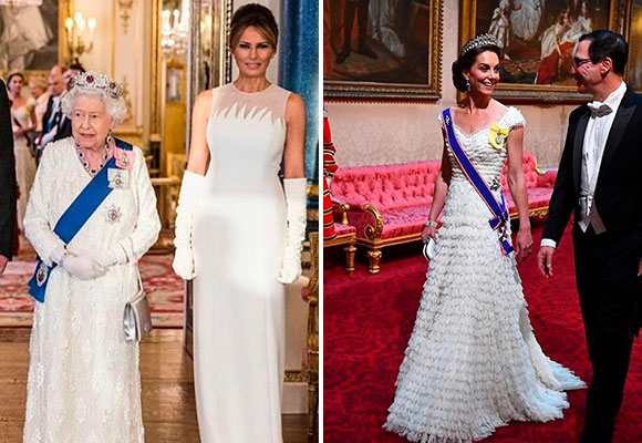 El blanco, protagonista en los atuendos de Melania Trump y Kate Middleton durante la cena de gala