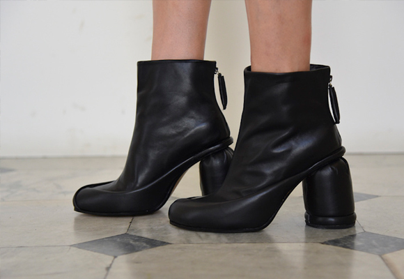 En la categoría de Mejor Colección de calzado, Stephanie Gossiercher logró conquistar a todos con su original diseño. Procedente del instituto italiano Polimoda, Gossiercher presentó unos botines negros inspirados en el surrealismo de Man Ray, con formas y volúmenes singulares, resaltando líneas limpias, pero no minimalistas.