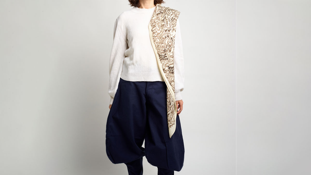 Esa idea de transformar algo cotidiano en algo poético encaja a la perfección con el espíritu de la marca. En sus pañuelos de seda, la técnica permite reinventar el uso del accesorio, dándole nuevas formas y significados.