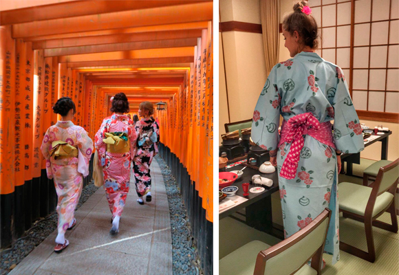 Kyoto mantiene la esencia del Japón más antiguo y tradicional pero que ha sabido modernizar su industria y es cuna de la tecnología más puntera. Sorprende y divierte ver a las jóvenes japonesas pasear por la ciudad con kimonos que alquilan para recrear una época y una tradición. Es como si, para visitar Sevilla, nos vistiéramos de flamencas. Pero ellas lo hacen con devoción.