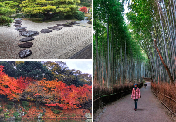 Merece la pena madrugar para ver amanecer desde el bosque de Arashiyama, la luz del sol naciente nos hará renacer entre bambús y un precioso paseo nos espera en cualquier época del año. Los cerezos en flor pintarán de blanco Arashiyama mientras que el otoño prefiere rojos, naranjas y amarillos. Son el Iroha y el Ginkgo Biloba llamando al Momiji, o momento para acudir al templo, pasear o simplemente disfrutar del espectáculo otoñal. Dicen que el japonés es de carácter introvertido, que apenas muestra sus emociones, sin embargo, hacen de cada momento un sueño y saben saborear las estaciones mejor que nadie.