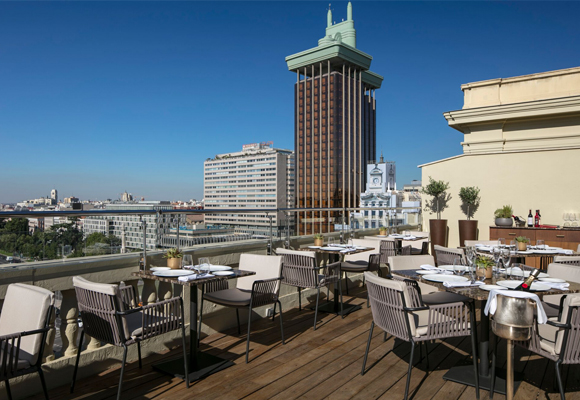Otro skyline que nos ha conquistado por ser diferente, más castizo y céntrico, es el que se disfruta desde la última planta del Hotel Gran Meliá Fénix en plena Plaza de Colón. La vista desde allí recorre el Paseo de Recoletos y la Biblioteca Nacional, varios de los enclaves más significativos del centro de Madrid y visitas obligadas si se realiza cualquier tour o paseo turístico para conocer la urbe. Bautizada como ‘Aduana’ la terraza cuenta con un íntimo lounge y la posibilidad de degustar su nueva carta veraniega con productos del mar como el centollo, el caviar de esturión o los ravioli de langosta como auténticos protagonistas.